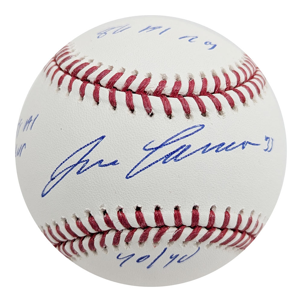 Get your very own Rawlings OML baseball that has been autographed by legendary slugger - Jose Canseco. He has included the inscriptions "86 AL ROY", "88 AL MVP", and "40/40".