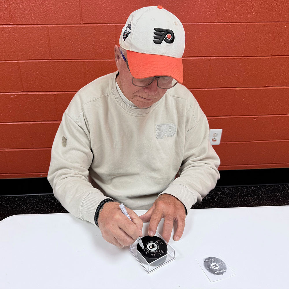 Get your very own puck that has been autographed by legendary HOF'er - Bobby Clarke!