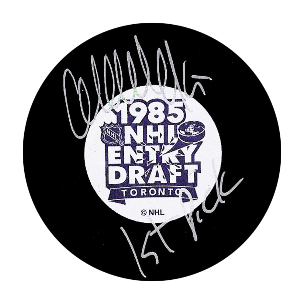 Get your very own 1985 NHL Draft puck that has been autographed by NHL great - Wendel Clark!  He has included a "1st Pick" inscription.