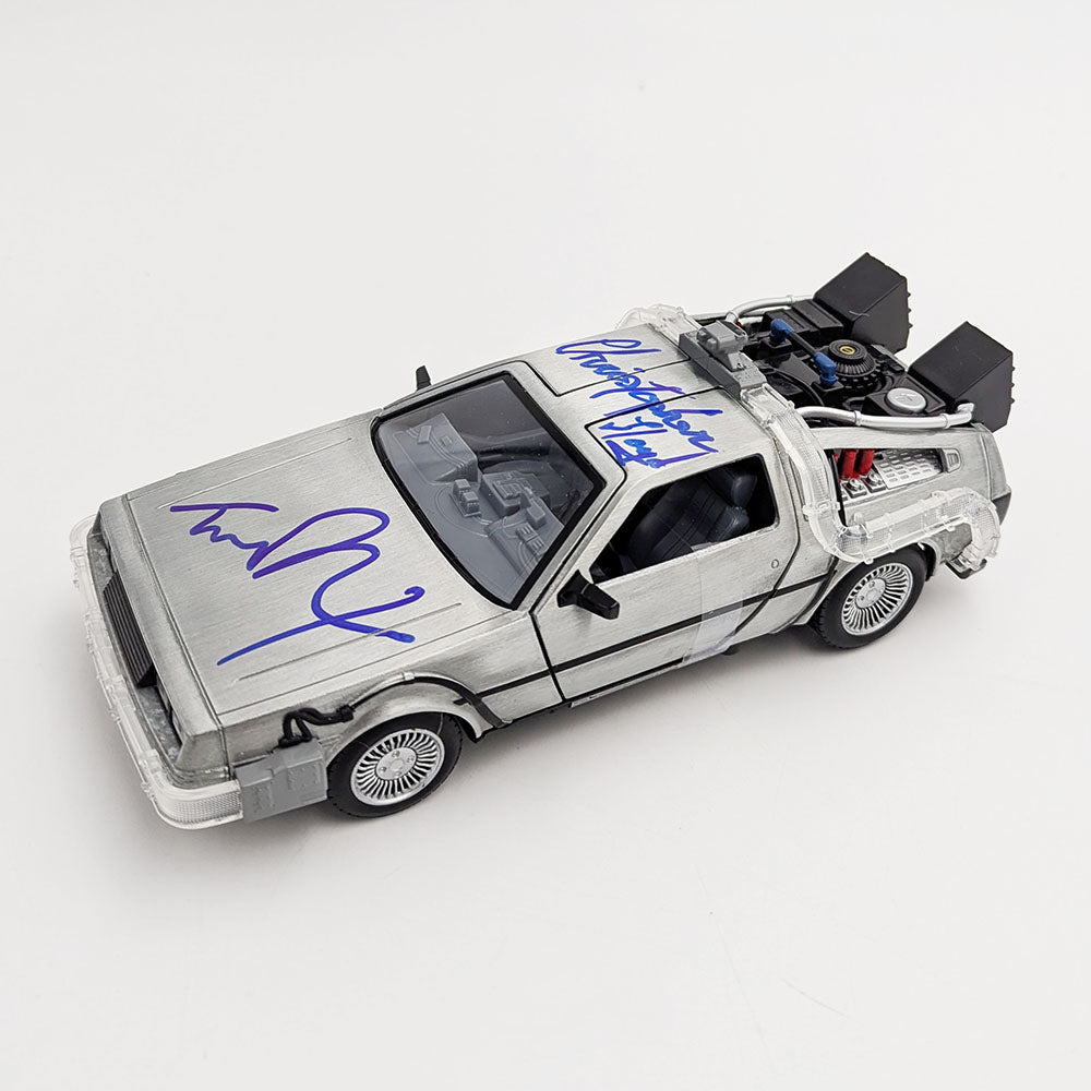 Get your very own 1:24 scale DeLorean "Time Machine" that has been autographed by "Back to the Future" stars - Michael J. Fox and Christopher Lloyd.