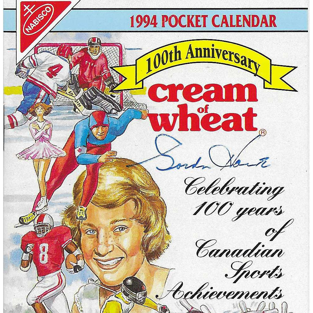 Get your very own Cream of Wheat 100th Anniversary 1994 Pocket Calendar that has been autographed by Mr. Hockey® himself - Gordie Howe®. The calendar celebrates 100 years of Canadian Sports Achievements. Calendar size is 6.25X3.5.