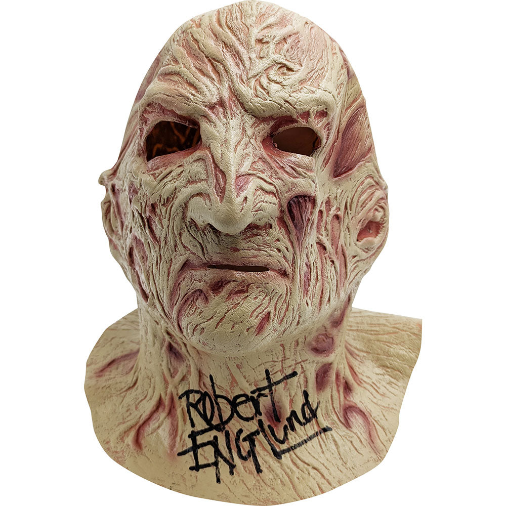 Get your very own "Freddy Krueger" mask that has been autographed by the star of the "Nightmare on Elm Street" franchise - Robert Englund.