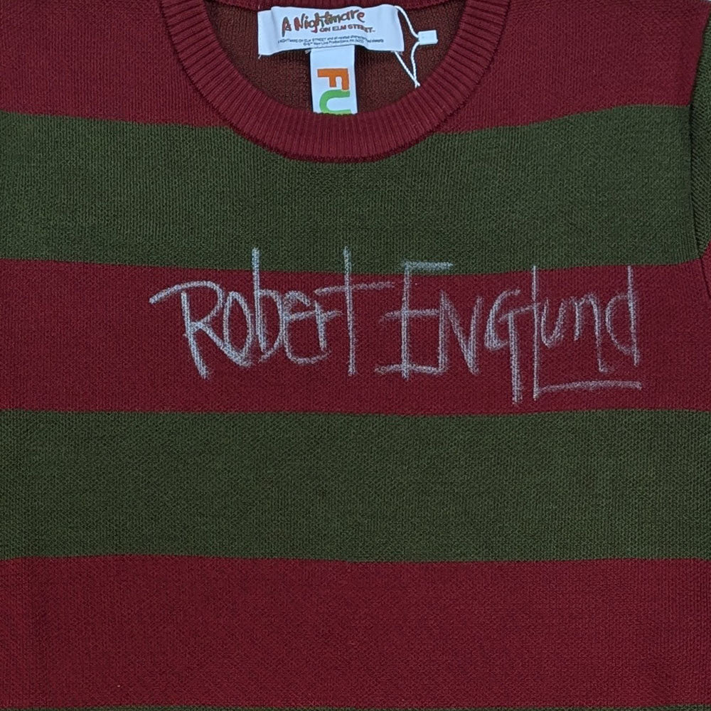 Get your very own "Freddy Krueger" sweater that has been autographed by the star of the "Nightmare on Elm Street" franchise - Robert Englund.