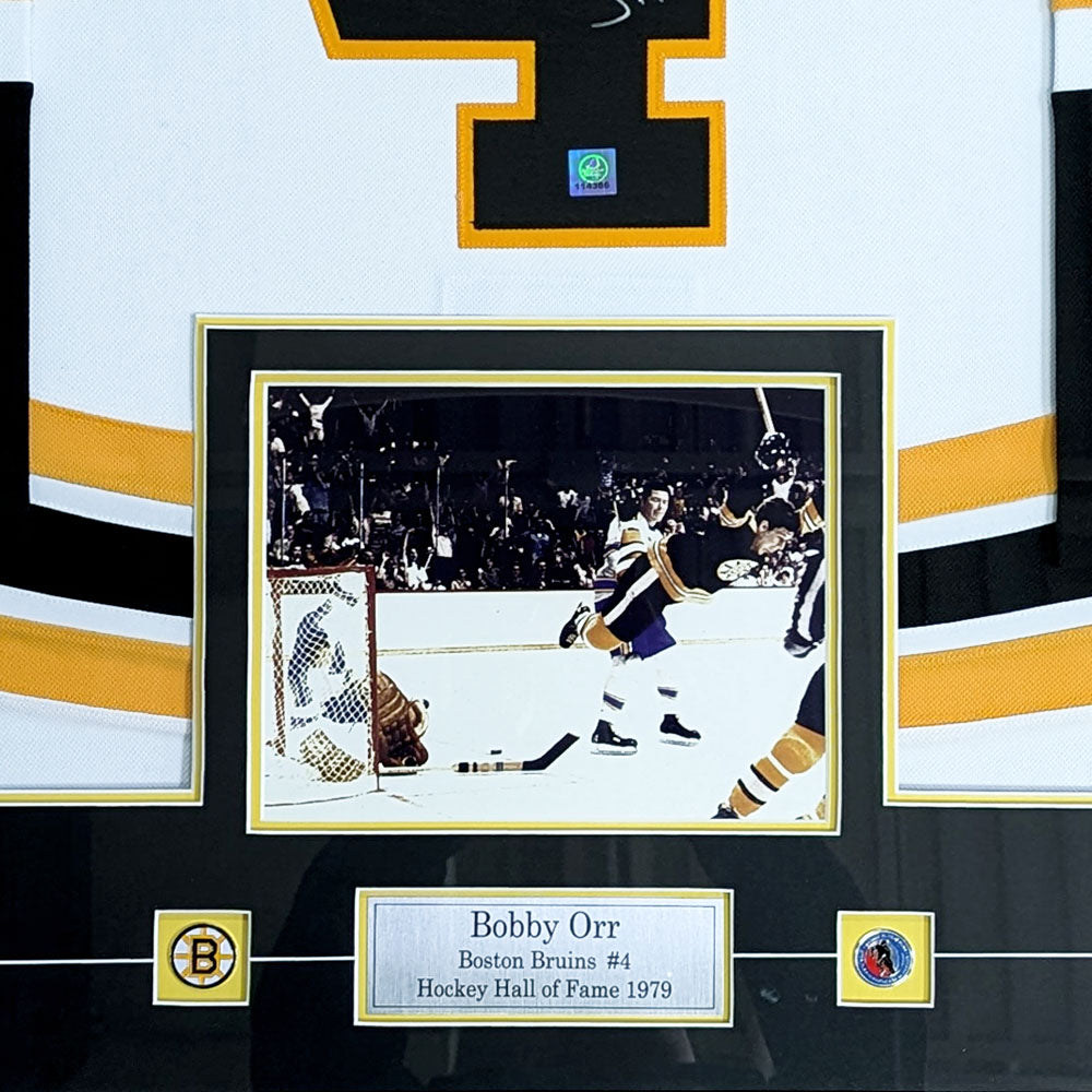 Get your very own framed Boston Bruins pro jersey that has been autographed by legendary HOF'er - Bobby Orr! Finished frame size is 35X43.