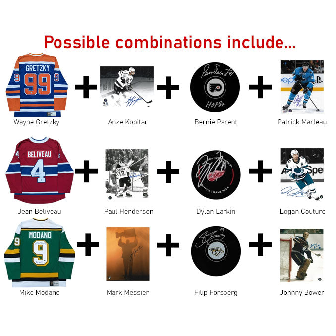 All Grab Bag purchases are final. No refunds or exchanges. Teams will vary - players may not be featured on their current club. Boxes featuring a deceased player jersey will not have an additional deceased puck/photo included.