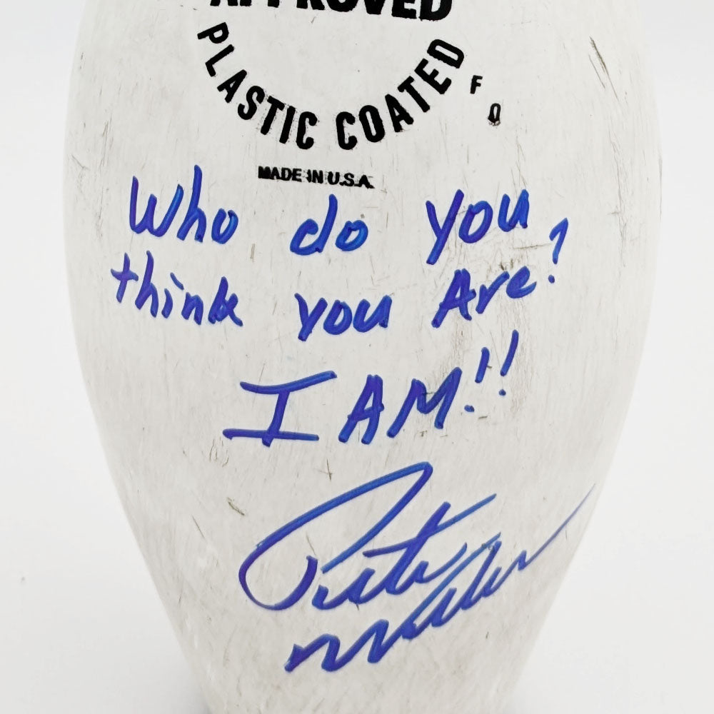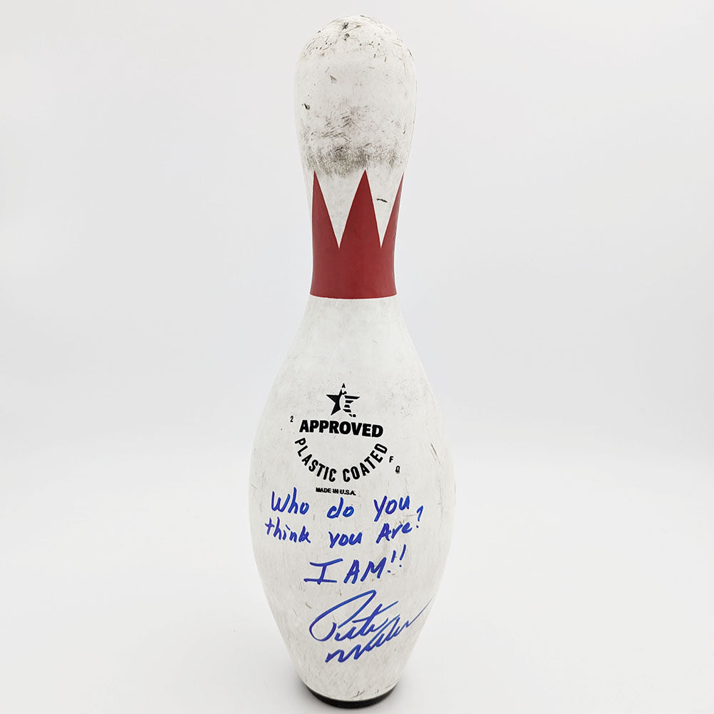 Get your very own bowling pin that has been autographed by bowling legend - Pete Weber! He has included his famous quote "Who do you think you are? I AM!!!".